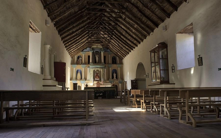 Se caracteriza por ser la más grande de la zona. Su construcción es en adobe y la rodea un cerco de este mismo material, que fue construido en 1978. El envigado es de tablas de algarrobo, amarradas con cintas de cuero, y la techumbre de tablillas de cactus, cubiertas con barro y paja.